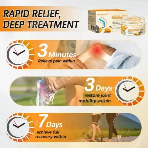 Approved by orthopedic specialists, Ourlyard™ Emu Oil & Bee Venom Arthritis Pain Relief Massage Gel delivers fast relief, soothing pain in just 3 minutes. It restores joint mobility within 3 days and supports full arthritis recovery in just 7 days. Formulated with natural anti-inflammatory ingredients like pure emu oil and bee venom, this gel penetrates deeply to reduce inflammation, improve circulation, lubricate joints, and promote long-term healing. Clinically proven and easy to use, it’s the ultimate solution for arthritis sufferers seeking quick relief and lasting recovery.