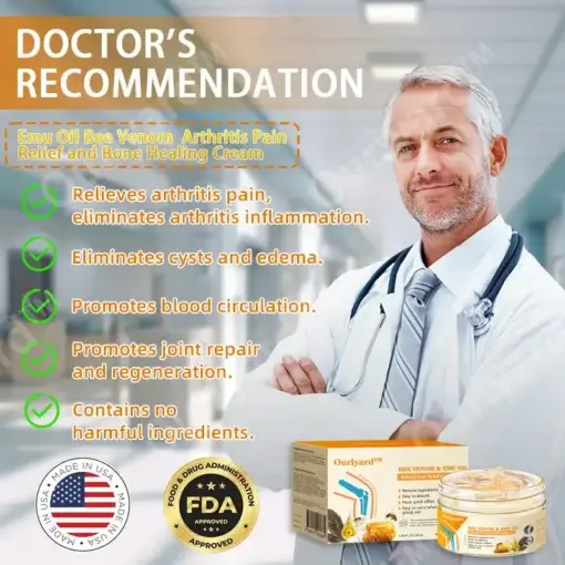 As an orthopedic surgeon, I highly recommend Ourlyard™ Emu Oil & Bee Venom Arthritis Pain Relief Massage Gel for those suffering from joint and bone conditions such as osteoarthritis, rheumatoid arthritis, and other inflammatory disorders. This gel combines the powerful healing properties of emu oil and bee venom, which work synergistically to reduce inflammation, alleviate pain, and promote joint health. Additionally, the gel aids in bone healing and tissue regeneration, while supporting overall mobility. Its unique formula helps repair damaged cartilage and bone tissue, providing long-term relief and enhanced joint function.