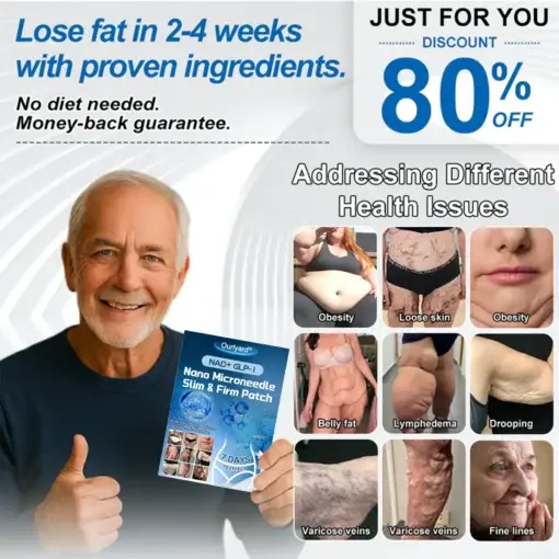 That’s when my husband ordered the Ourlyard® NAD+ GLP-1 Nano Microneedle Patch for me. Not only does it support healthy weight loss, but it also firms the skin—and the results feel incredible. I use it daily, and by day five, I could already feel my skin getting tighter, and my weight had started dropping noticeably. After just two weeks, my belly looked completely different—no more wrinkles, no more sagging, just smooth, firm skin like when I was 20.