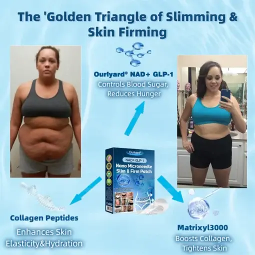 The Ourlyard® NAD+ GLP-1 Nano Microneedle Patch was developed by a top team of endocrinology experts after years of research into weight loss and metabolic health. Its advanced formula promotes fat burning, stabilizes blood sugar, and boosts metabolism. It also contains Matrixyl 3000 to help lift and firm the skin, improving both body shape and skin tone.